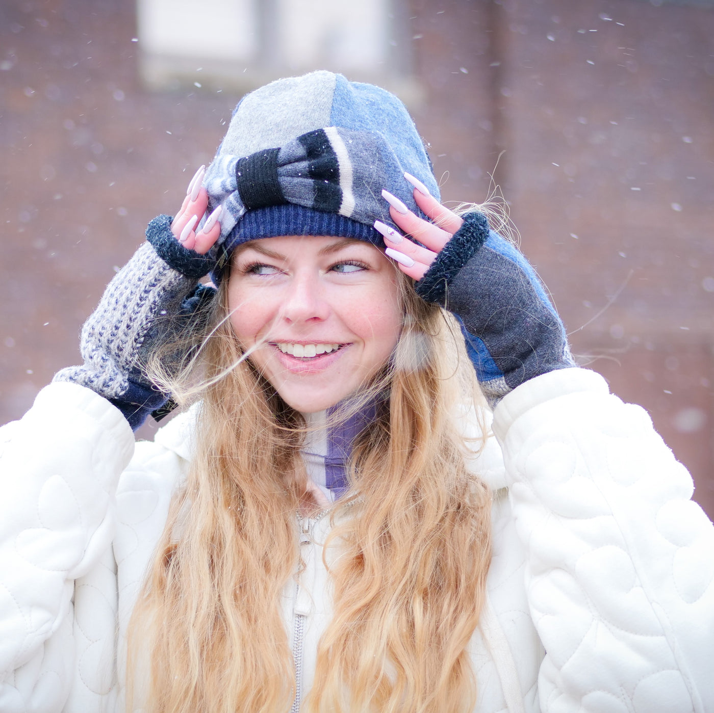 This sporty little hat will keep your head warm while you hit the slopes or walk the dog this winter. The Baabaazuzu ski cap is tassel topped, hand stitched and styled from sweater refashion woolens. Each recycled wool ski hat is lined with cozy micro fleece and available in a wide selection of bold, eye-catching colors and patterns.